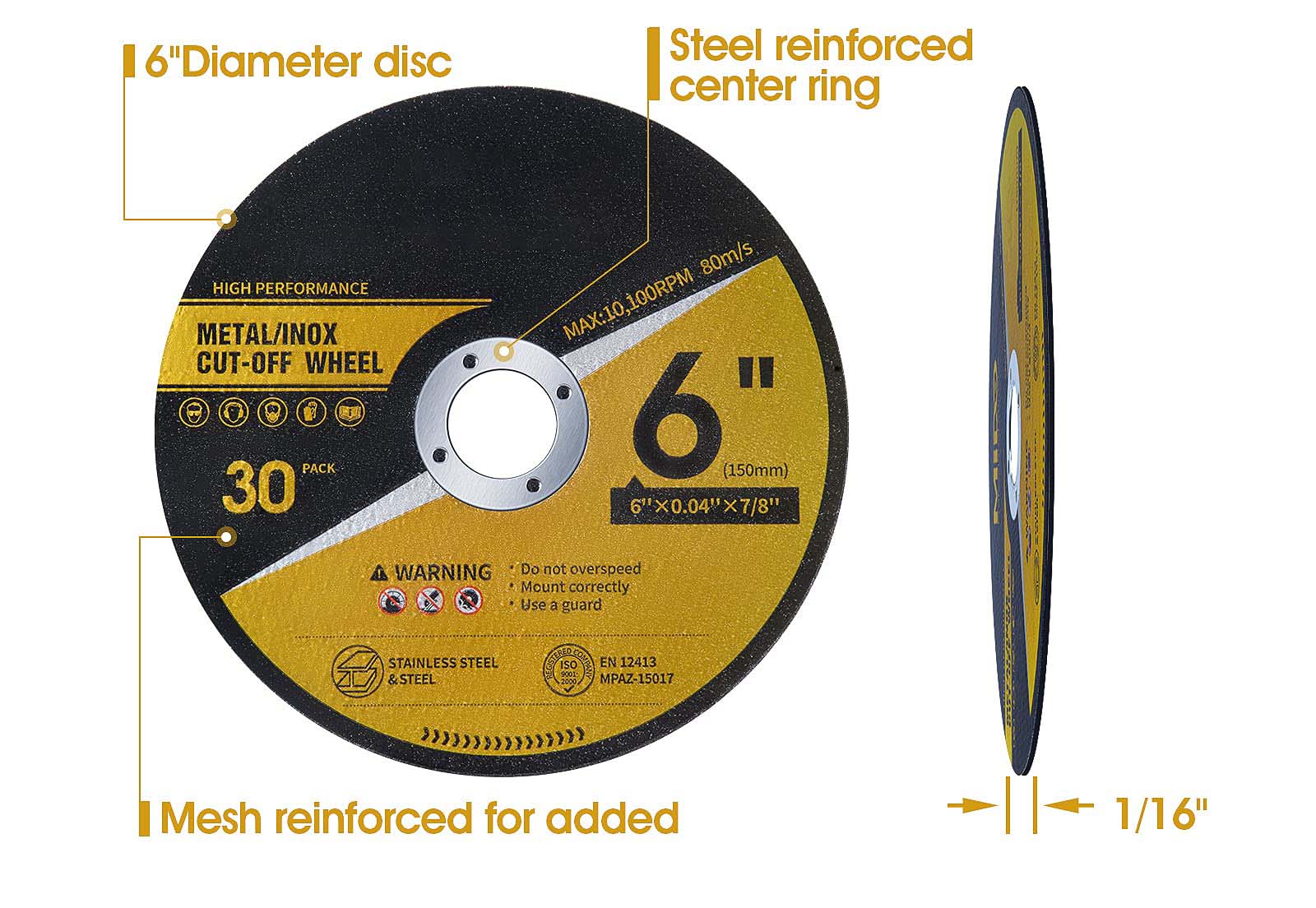 Ultra-cieńsze konstrukcje 4,5 mm minimalizuje marnotrawstwo materiałowe, zrównoważone precyzyjnie do pracy bez wibracji, certyfikowany proces produkcyjny ISO 9001, zapewnia do 50% dłuższą żywotność niż konwencjonalne dyski.