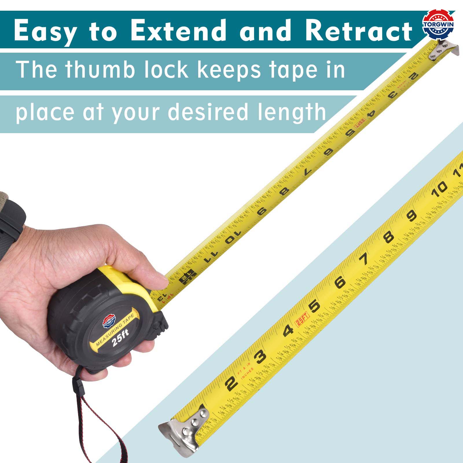 3. Łatwy do przedłużenia i wycofania:Nasza taśma z wygodnym zamkiem kciuka pozwala łatwo rozszerzyć i cofać taśmę, utrzymując ją bezpiecznie na miejscu na pożądanej długości do pomiaru bezkwestionowania.